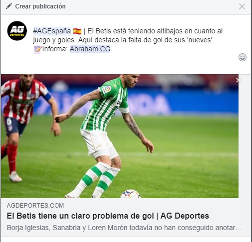 Una vez que se le ha asignado el permiso en Facebook, las publicaciones para AG Deportes se hacen a través de la misma cuenta de Facebook del colaborador ya que se agrega la página dentro de su propio perfil.