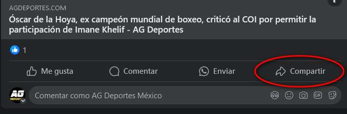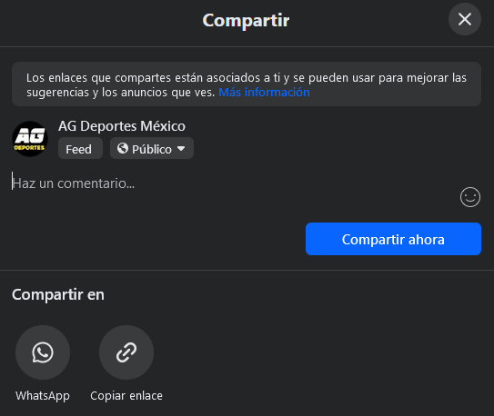 Ahora vamos a poner como ejemplo una publicación que se realizó en Facebook de AG Deportes Boxeo y la queremos compartir en la página de Facebook de AG Deportes México.