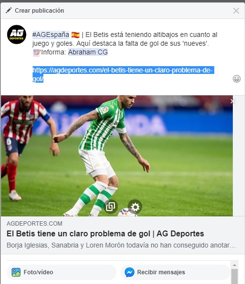 - Si la publicación se trata de la difusión de un artículo escrito en el portal web, no hace falta contar con una fotografía ya que, al colocar el enlace de la noticia, se genera una vista previa y es obligatorio por parte del corresponsal, revisar que esta se genere correctamente.