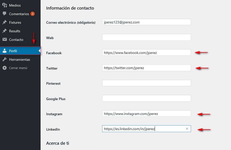 - Añade enlaces a redes sociales donde compartas contenido periodístico.