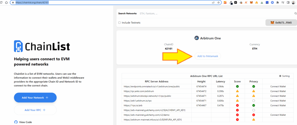https://chainlist.org/chain/42161