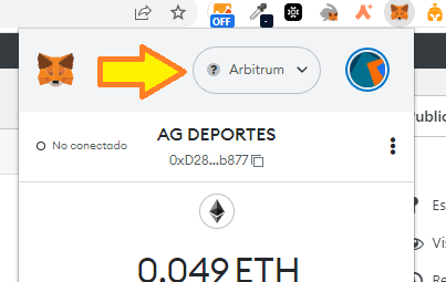 Luego de ello vamos a ver en nuestra wallet en la parte superior que dice Arbitrum